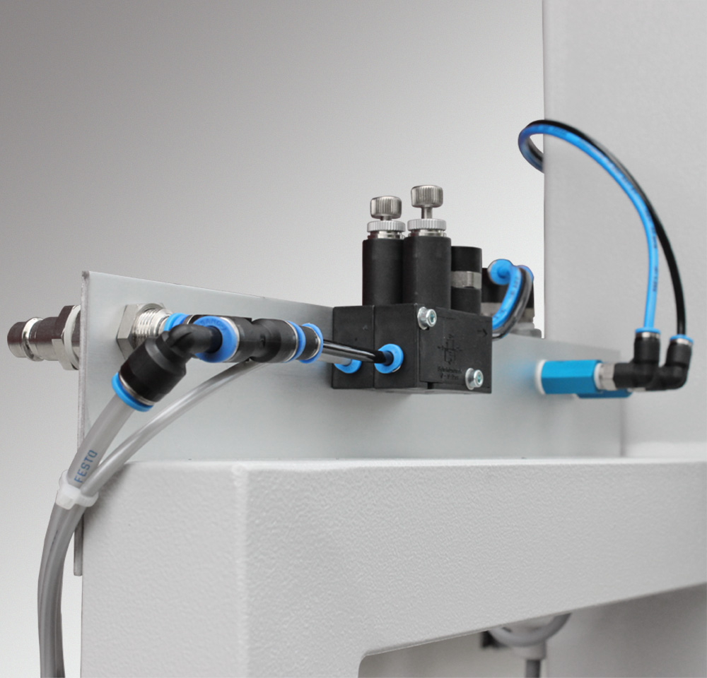 Der Speicher besitzt bei Belegung aller Laufrollen ein Volumen von ca. 8 Meter. Das untere bewegliche Rollenpaket ist pneumatisch unterstützt und kann entweder mittels eines Druckreglers mit Luft beaufschlagt oder entlastet werden. Ein Regelarm mit Pneumatikventil schaltet die Druckluftunterstützung ein und die Verarbeitungsmaschine kann sehr leicht das untere Rollenpaket nach oben bewegen und das Material entnehmen.