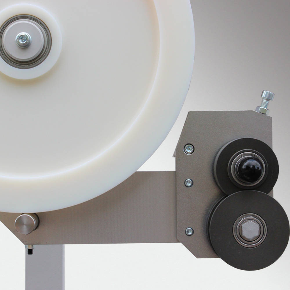 Mittels eines Tänzerarms mit Potentiometer wird je nach Position der Sollwert an den Spulenabroller ausgegeben und der Abwickelprozess gesteuert.